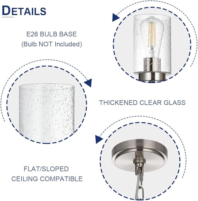 • EASY INSTALLATION - Our pendant light can be mounted on flat or sloped ceiling as you like. Package includes all mounting hardware and a detailed mounting instructional manual. You can quickly and easily install.