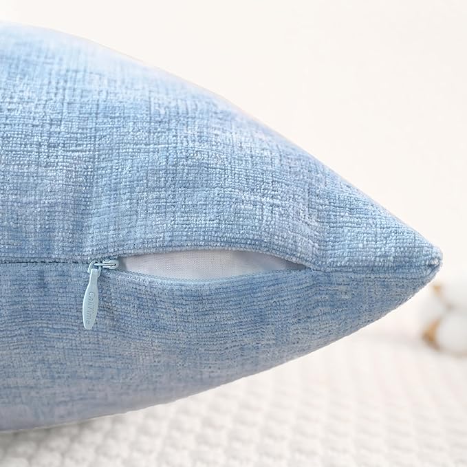 CaliTime Throw Pillow Covers Decorative 16 X 26 Inches Pack of 2 Cozy Chenille Cushion Cases for Couch Sofa Bed Living Room Home Baby Blue