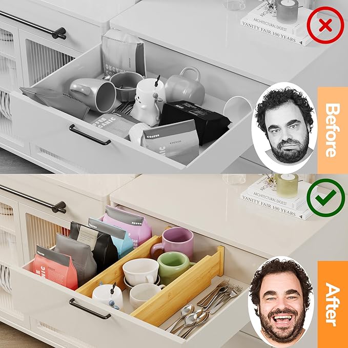 • CLEAN AND SAFE MATERIAL: The BAMEOS flatware organizers are made of bamboo, which is an clean enough material and can protect your drawer