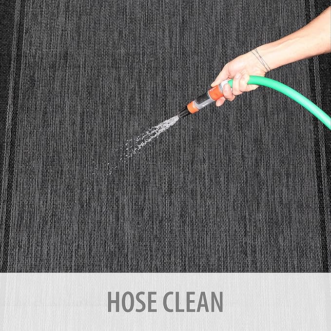 • [ WASHABLE: ] You can vacuum with a vacuum cleaner indoors and you can wash with a hose outdoors. To wash an outdoor rug, spray the surface with a 5-1 mixture of mild dish soap and water and then rise with a hose.