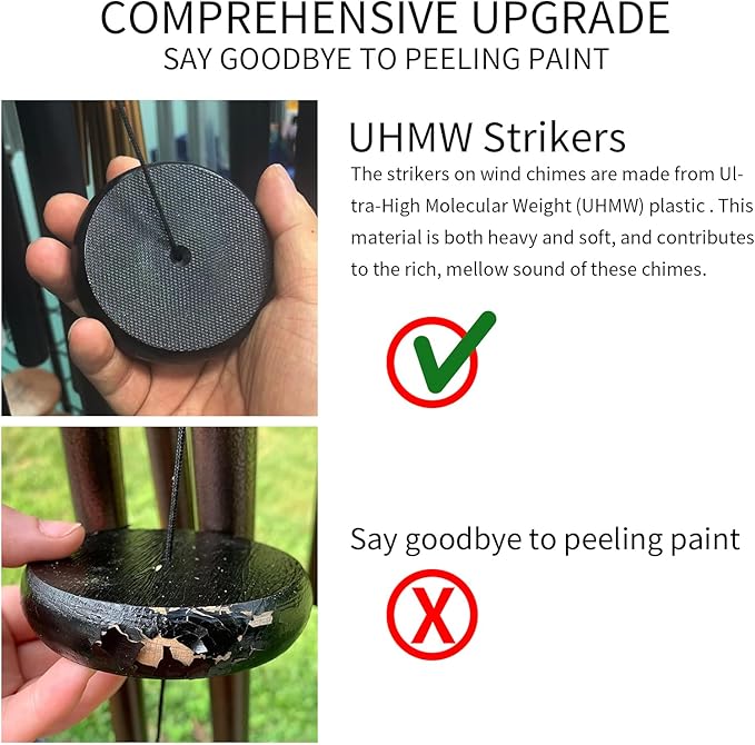• Deep Tenor and Bass Sounds: Our wind chimes produce soothing melodies that sound like the music of church bells. The expert tuning creates a deep tone that's relaxing and beautiful.