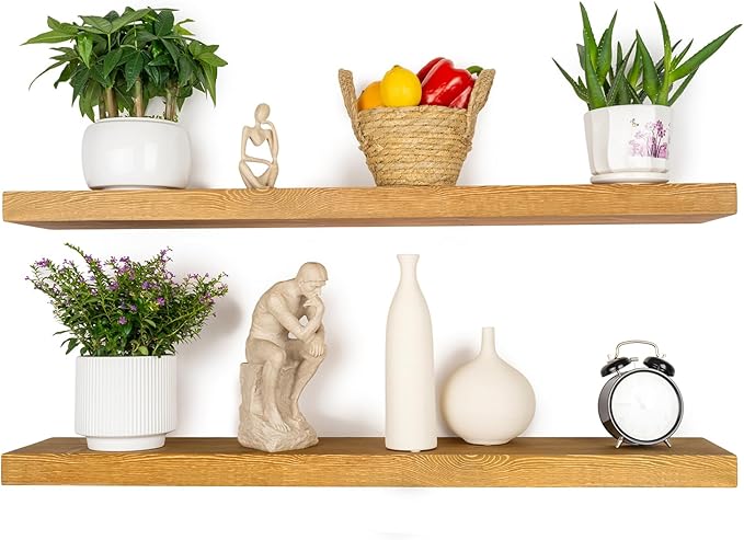 BGMG Wood Floating Shelves for Wall 36 inch Set of 2,Rustic Wooden Wall Mount Shelves for Bathroom Living Room Bedroom Kitchen Farmhouse-36x 6.7 x1.25 inch- Gold Oak