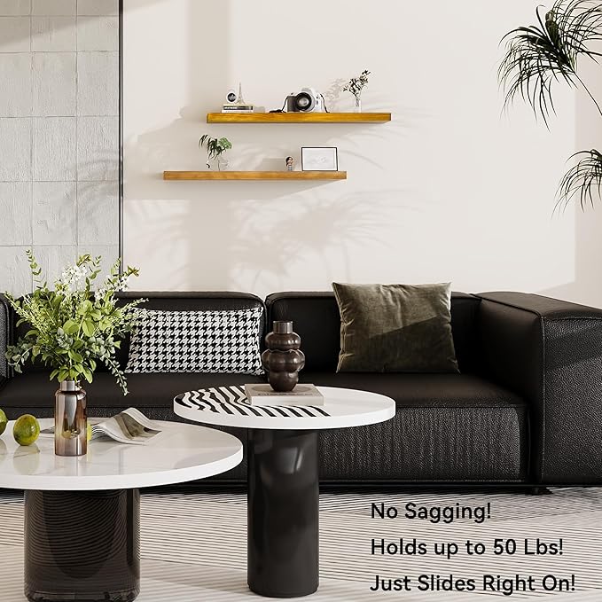 - MODERN RUSTIC LOOK - The floating shelves are made of natural pine, and the wood has different nodes and grains, so the color of each shelf may be slightly different, but equally stunning!