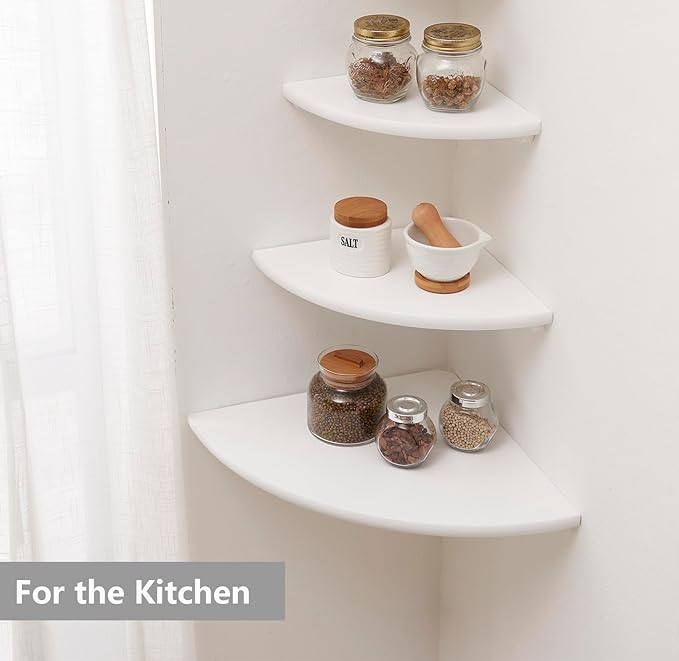 - 【Functional Corner Wall Shelf】floating corner shelf practical wall space saver, and very useful for adding extra storage space to store and reorganize small items in your bathroom, bedroom, living room, kitchen, and more, it is a nice way to clear up the clutter