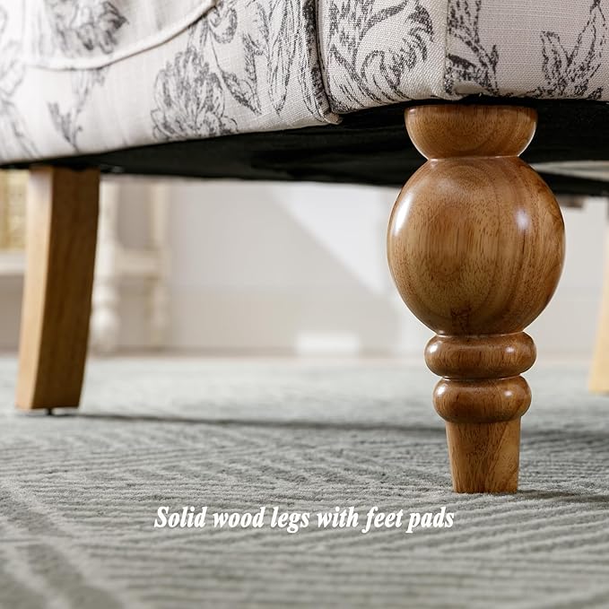 DUOMAY Tufted Accent Chair, Modern Linen Upholstered Wingback Side Arm Chair for Living Room Bedroom with Wood Legs, Comfy Reading Guest Chair for Office, Beige Flower Pattern