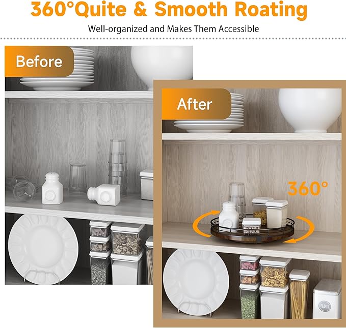 - ððððððððð ððð:This lazy susan is enough to be used nearly anywhere, perfect in the kitchen, cabinets, dining room, office, etc. on your kitchen or dining table for organizing condiments, napkins, decor, candles. Easily reach all your medicine, spices, canned goods in your pantry. Next to your stove, hold all the essentials essences, bowls, greenery, and a butter dish. Good idea for the office desk and craft room to organize. Keep your coffee stuff perfect at your coffee station.