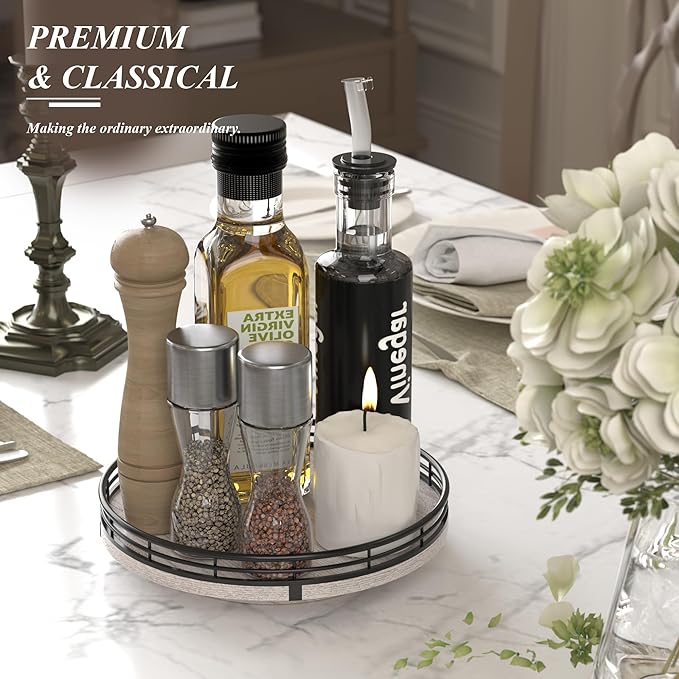 - ððð°ðððððððð: The base is made of solid wood, and the spinning mechanism is made of steel ball bearings, which are well-built and allow for 360°smooth spinning. This Lazy Susan organizer is very attractive and very easy to use to keep your spices, condiments, and more organized and accessible.