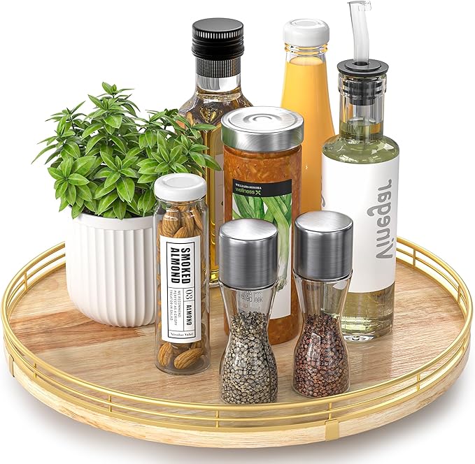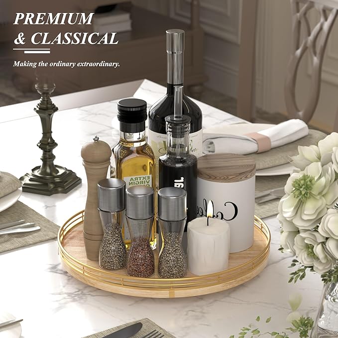 - ððððððððð ððð:This lazy susan is enough to be used nearly anywhere, perfect in the kitchen, cabinets, dining room, office, etc. on your kitchen or dining table for organizing condiments, napkins, decor, candles. Easily reach all your medicine, spices, canned goods in your pantry. Next to your stove, hold all the essentials essences, bowls, greenery, and a butter dish. Good idea for the office desk and craft room to organize. Keep your coffee stuff perfect at your coffee station.