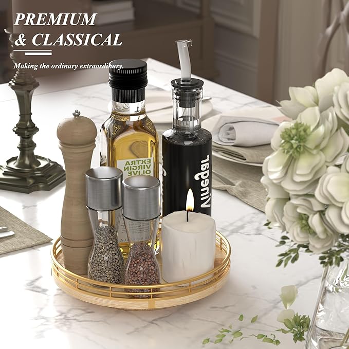 - ððððððððð ððð:This lazy susan is enough to be used nearly anywhere, perfect in the kitchen, cabinets, dining room, office, etc. on your kitchen or dining table for organizing condiments, napkins, decor, candles. Easily reach all your medicine, spices, canned goods in your pantry. Next to your stove, hold all the essentials essences, bowls, greenery, and a butter dish. Good idea for the office desk and craft room to organize. Keep your coffee stuff perfect at your coffee station.