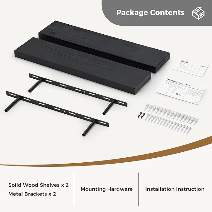 - Excellent Storage & DÃĐcor - Each board measures 24"L x 5.7"W x 1.3"H, hold up to 50 lb. This floating shelf taking up zero square feet, reduces clutter and highlights dÃĐcor in compact spaces. It can help make full use of the empty wall, which is much more space-saving and makes your room look larger and tidier.