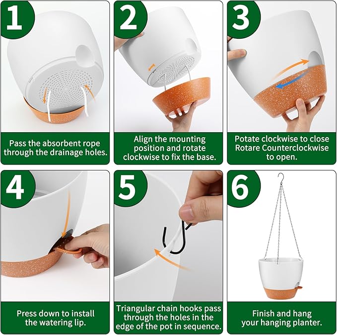 - 【Excellent Drainage Holes and Watering Lip】These flower pots for plants come with multiple drainage holes in the bottom. The holes and watering lip provide an air circulation system for the plant roots, which greatly reduces the problem of root rot of plants in a closed environment. The independent watering lip replenishes water for plants, so that water does not have to pass through the plant itself, At the same time, it is convenient to observe the current water level.