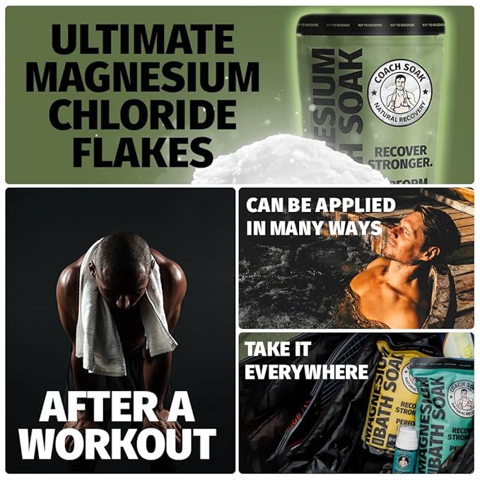 - Muscle Support Bath Soak: Experience natural muscle and joint support with Coach Soakâs bath soak, featuring magnesium flakes, Dead Sea salts, and Vitamin C. Designed for foot or full-body soaks, our bath salt blend delivers a refreshing experience thatâs perfect after a long day or intense activity
