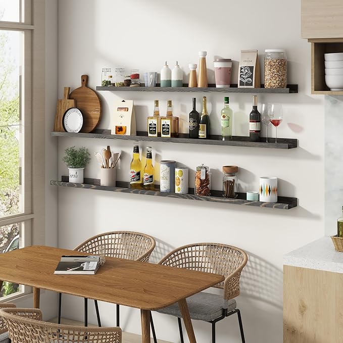 - Multi-scene & Functional: The wall-mounted shelves are designed for decoration and storage, utilizing and decorating any space in your home. Used as shelf decor to show your collection, books, or prize, the hanging shelves are perfect for displaying your photo frame, small plants, model, or audio in your living room, office, study. And can also use as over the toilet storage shelf in the bathroom to hold toiletries or used as a kitchen shelf to store condiments