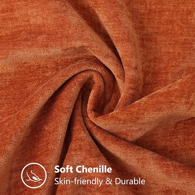 decorUhome Fall Chenille Soft Throw Pillow Covers 18x18 Set of 2, Farmhouse Velvet Neutral Decorative Euro Pillow Covers with Stitched Edge for Couch Sofa Bed Home Decor, Rust
