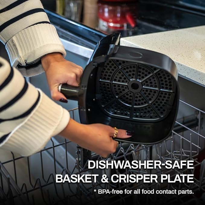 - QUICK & EASY CLEAN-UP: Non-stick, dishwasher-safe stainless steel air fryer basket, and crisper plate go straight into the dishwasher for cleaning, bringing huge convenience to your kitchen. BPA-free for all food contact parts.