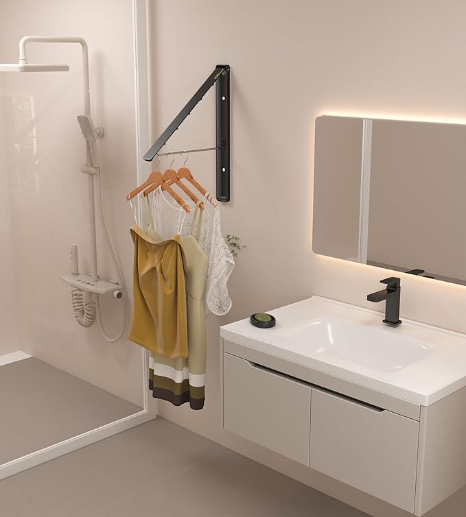 - 【Foldable & Retractable Design】: The coat hanger racks are specially designed to save space. If there are not so many space to hanging clothes, it will be your good choice. When not in use, it can fold to achieve invisible effect and never become mess. Suit for Laundry room, Balcony, Bathroom, Bedroom, Closet.etc.