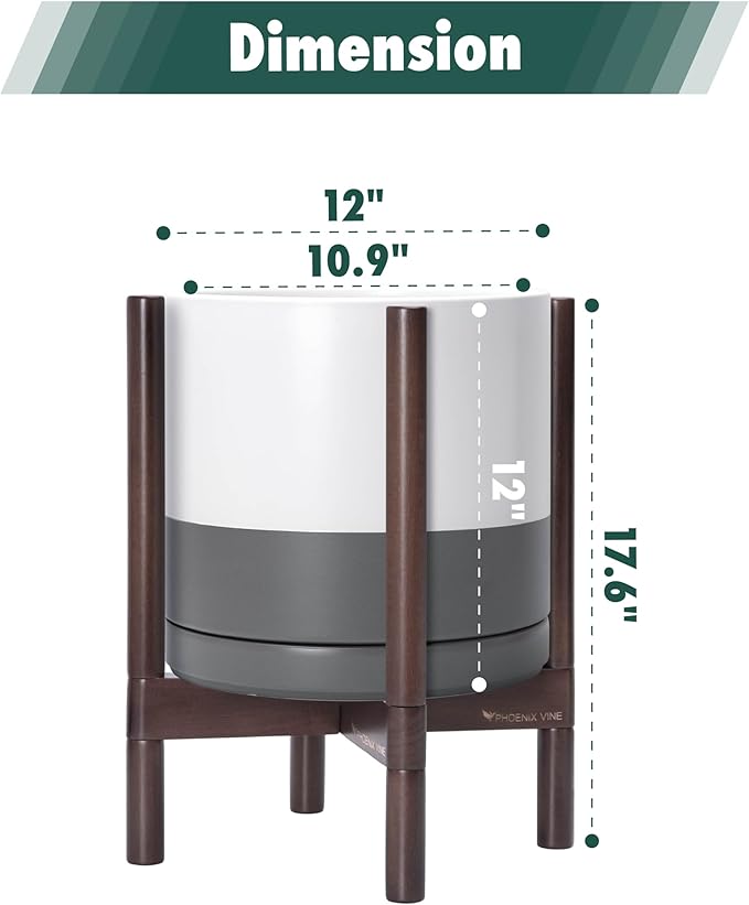 • 12 Inch Pot with Stand Set: Planter size: 11.8"Diameter x 11.8"H; pot with stand total height: 18.5 inch.