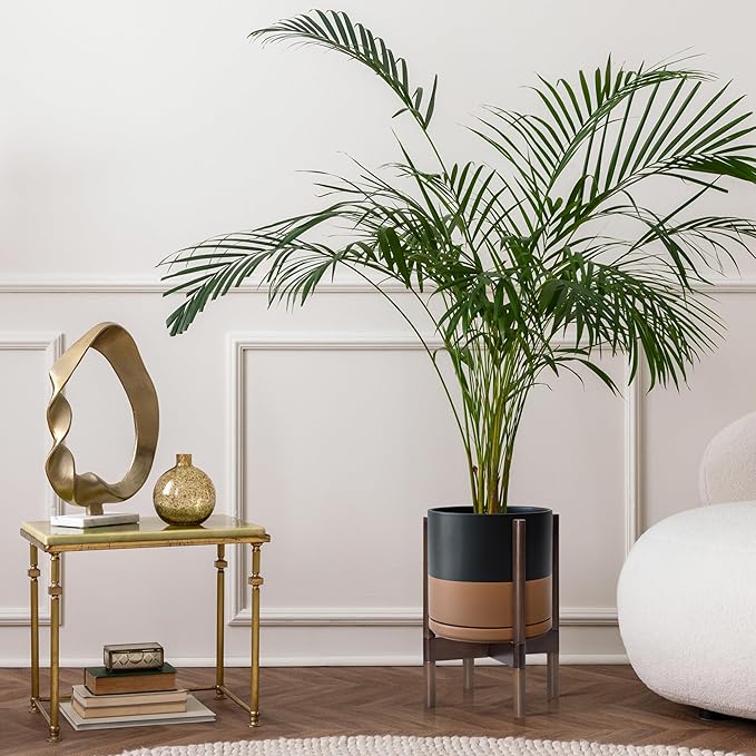 • A Complete Set: Mid-century ceramic planter, combined with a sculptural, solid wood stand that match perfectly together and looks great in anywhere.