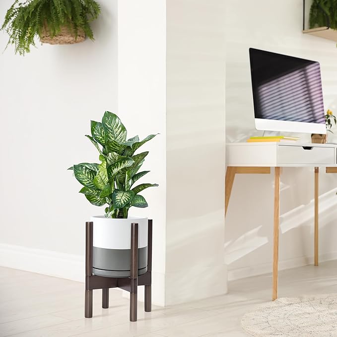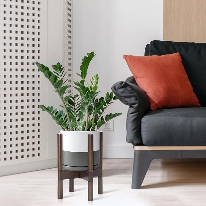 • A Complete Set: Mid-century ceramic planter, combined with a sculptural, solid wood stand that match perfectly together and looks great in anywhere.
