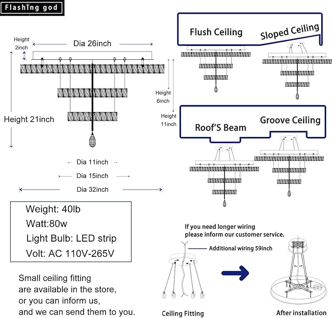 • 【Installing Chandelier】Please ensure that the product size is suitable for your needs.This product is easy to install with instructions. If you have any questions, we will all help you figure it out