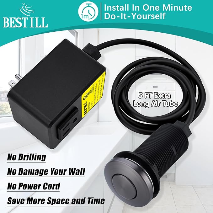 • SAFETY IS OUR FIRST PRORITY - The power module of BESTILL Garbage Disposal Air Switch Kit is UL Certified(NO. E530042), not just the power cord, it's more secure and reliable, without worrying about potential damages or safety risks.