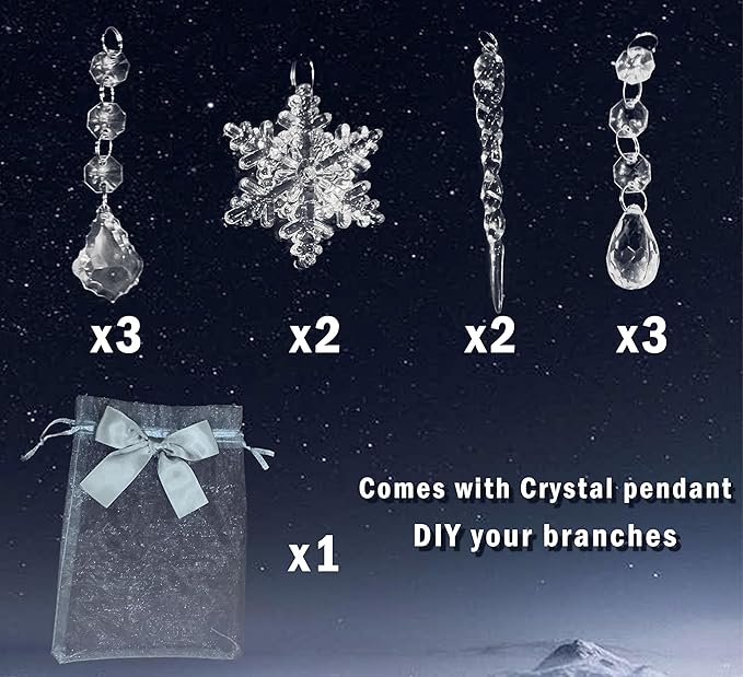 • 🎄 Come with Crystal Pendant: 4 different type of crystal decorations,just DIY your christmas branch lights