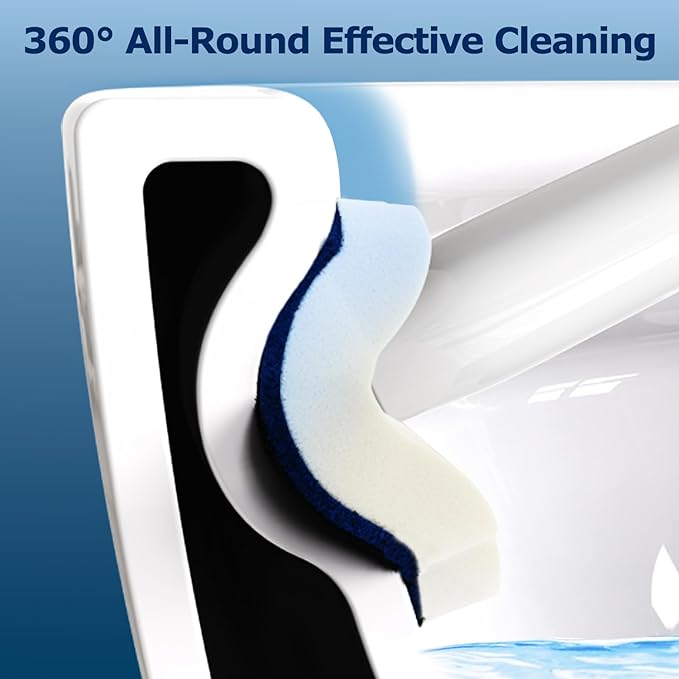 - UPGRADED HANDLE & EASY TO USE: The handle is extended to 18in long (others are 15in), enabling you to clean the toilet from a distance. With a click of the button at the top of the wand, the cleaning pads easily snap on the wand to swish, scrub and clean the toilet bowl, then pop off to throw into the trashcan. It makes the whole toilet cleaning process much easier and great fun