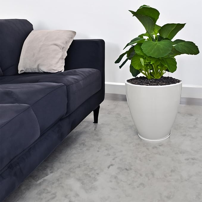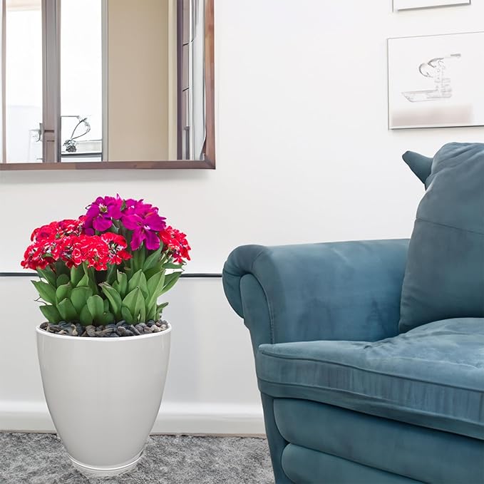 FixtureDisplays® 11.8" Diameter 11.8" Tall White Plant Pots, Plastic Flower Pots with Drainage Holes and Saucers for Indoor and Outdoor 15748-NF