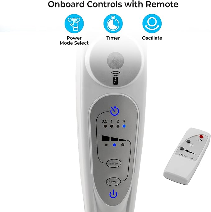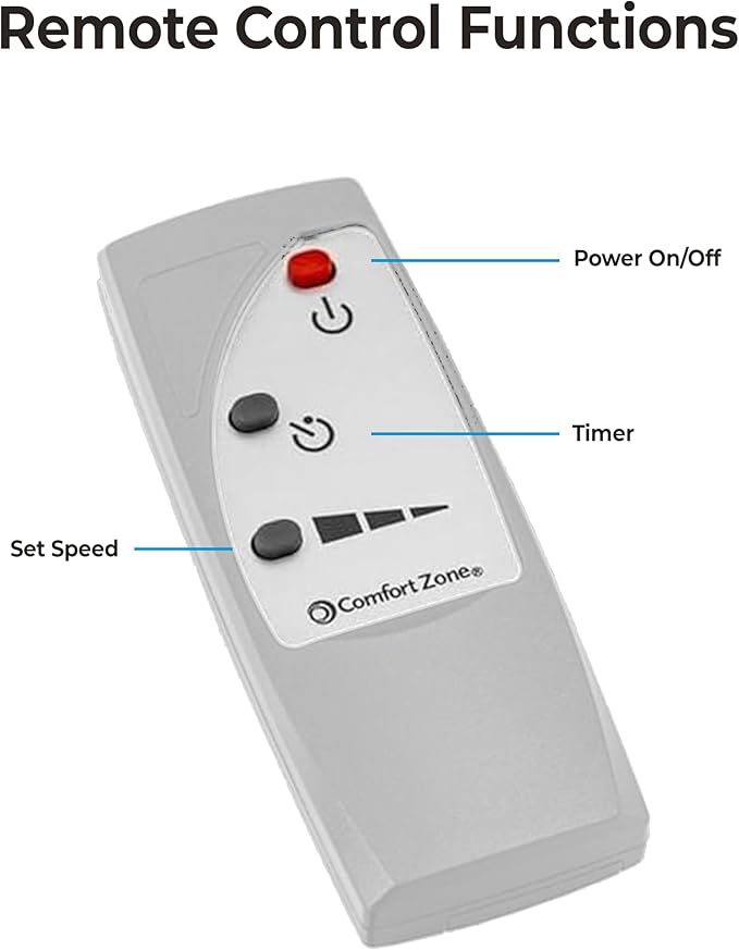 Comfort Zone 18-Inch Oscillating Pedestal Fan with Remote Control, 3-Speed Standing Fan with Adjustable Height (45–52”), Tilt, 4-Hour Timer & Auto Shutoff – Quiet Bedroom Fan, White