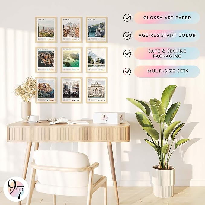 • SET INCLUDES: You'll receive 9 City Art Posters 8x10" (UNFRAMED), including famous architecture landscape wall decor like New York skyline wall art and cityscape pictures that are perfect for ant city bedroom decor