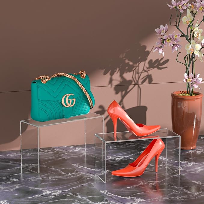 - Wide Application: The acrylic display risers can be used for so many items display. It can be used for Amiibo Funko Pop Figures collectibles, toys organizer, cupcake stand for your home or party. It can be used for displaying perfumes, cosmetics, bags, shoes, sun glasses, jewelrys, wallets in retails or vendors.