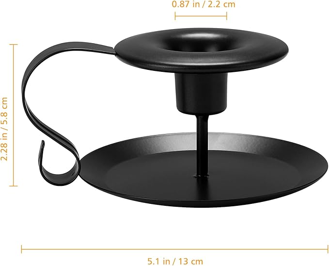 • Candle Holder: Hand crafted wrought iron ,matte black baking finish.Base size: 4.2",2.5"high,Top size:2.75" in diameter.Weight 0.46lb.