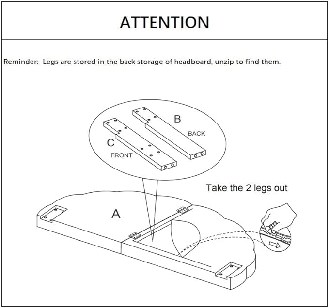 • Easy Assemble: Tools included for easy assembly . Remind: Legs are stored in the back of headboard,unzip to find them.