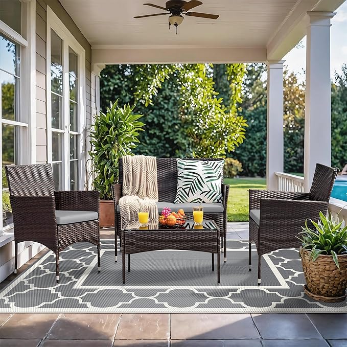 - Mood-Boosting Colors:Choose stain-resistant dark tones or go modern with blue & white or black. The reversible mat, with outdoor carpet qualities, is easy to clean and coordinates seamlessly with various decors. Whether placed on your deck or under a shaded umbrella, it serves as the perfect outdoor patio rug to match the style of your pamapic outdoor furniture.Itâs an excellent piece for fall home decor or to use as a stylish outdoor rug fall accent