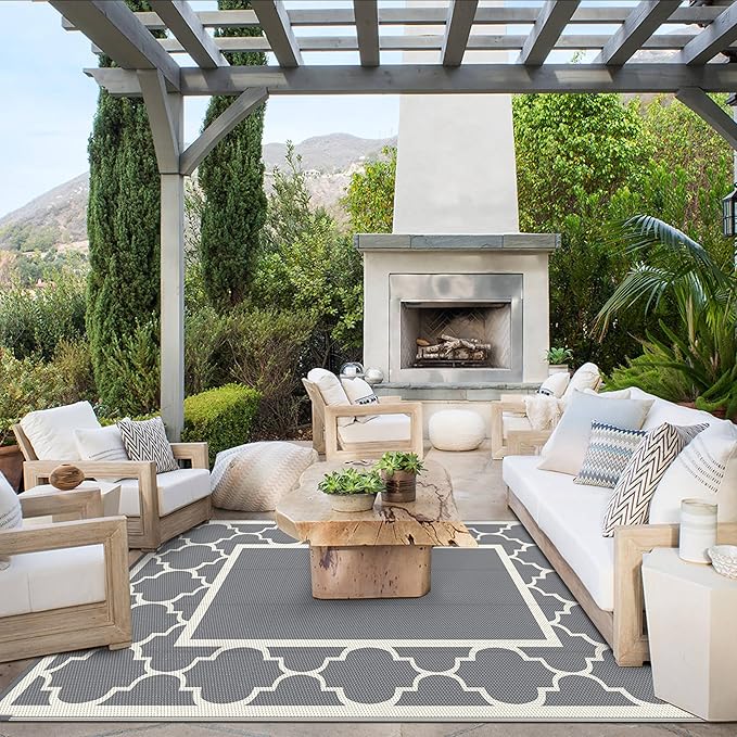 - Versatile Settings:Upgraded polypropylene ensures breathability and fast drying in this outdoor rug waterproof design. Perfect for the patio, deck, backyard, garden, porch, beach, RV, picnic, or camping. Elevate your outdoor experience with GENIMOâwhether you're furnishing a peaceful retreat with pamapic outdoor furniture or outfitting your weekend getaway with stylish rv essentials.Also great as fall outdoor decor or a key element in your fall decor transformation
