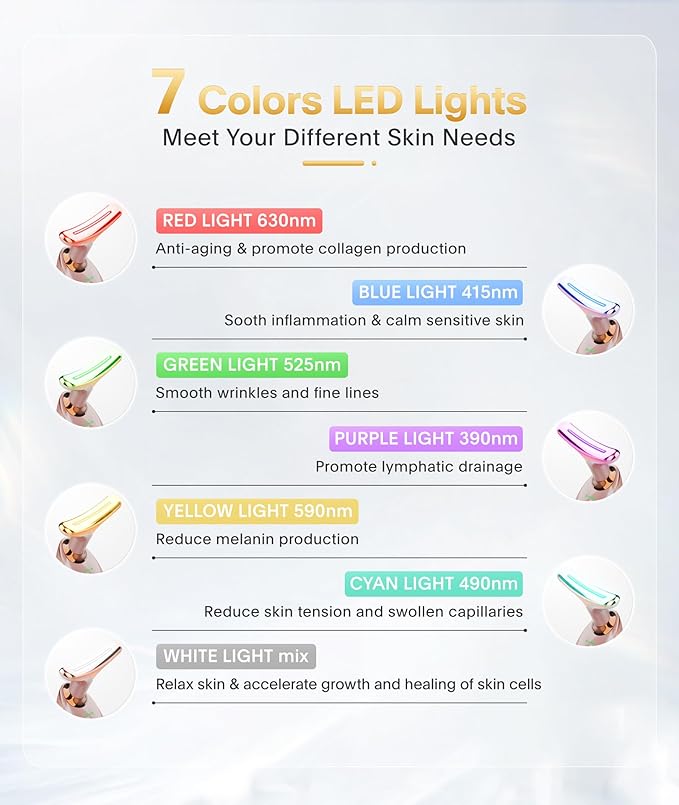 • 7-in-1 Facial Massager - This face neck massager has 7 light modes with various functions that can be used to massage the face and neck with serum, lotion and the like in daily skincare routine. It can also be used on other body parts, tightening the sagging skin and relaxing the muscles.