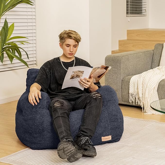 Bean Bag Chair with Filler, Bean Bag Sofa with Tufted Soft Stuffed Filling, Fluffy and Lazy Sofa, Comfy Cozy BeanBag Chairs with Memory Foam for Dorm, Apartment, Living Room (Blue)
