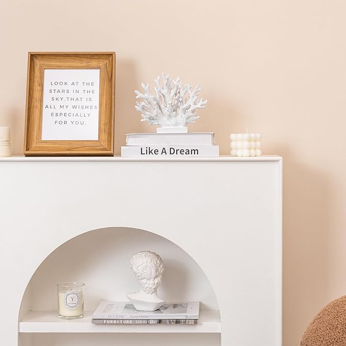 5.8" H White Coral Decor, Resin Coral Statue, Nautical Decorations for Home, Bedroom, Bathroom, Living Room, Beach/Coastal/Ocean Themed Cabinet Shelf Tabletop Decor