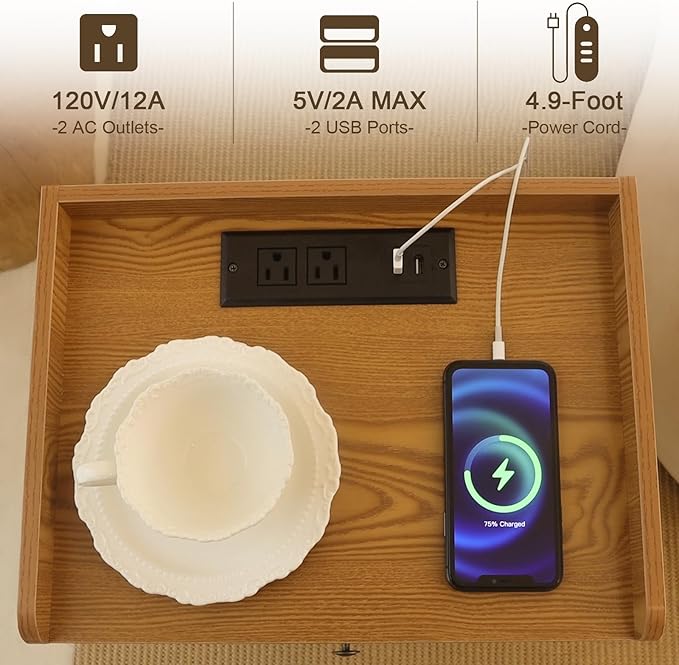 - Multifunctional Nightstand: This mid century modern nightstand with the charging station is equipped with 2 USB Ports and 2Ã3-Prong Power Outlets that can meet your needs to charge phones, iPads, laptops, and desk lamps easily. The 4.9-foot-long electrical cord makes phones, and ipads when charging that also is within your armâs reach
