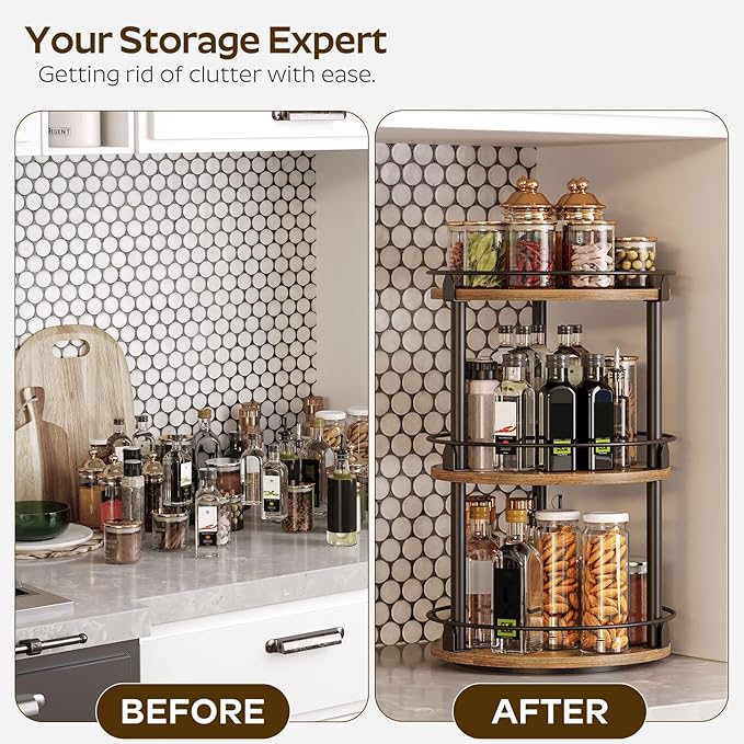 - Crafting Time: Our spice rack comes with all necessary accessories, clear instructions and installation tools. By following the instructions, you can quickly assemble this multifunctional and practical rotating spice organizer right away