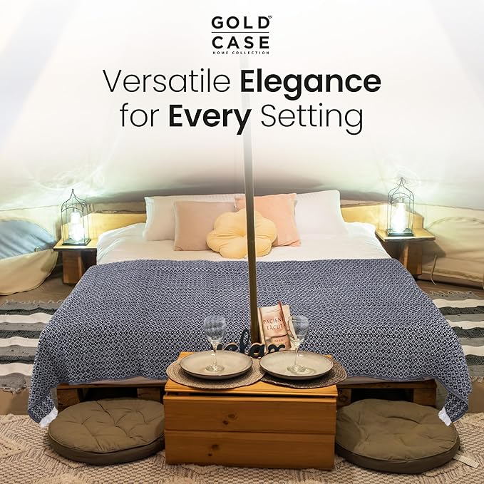 Gold Case Throw Blanket for Bed – 100% Recycled Turkish Cotton Bed Blanket – Decorative Throw Cotton Blankets for Living Room & Bedroom – Retro Black Woven Queen Blankets – 90x90