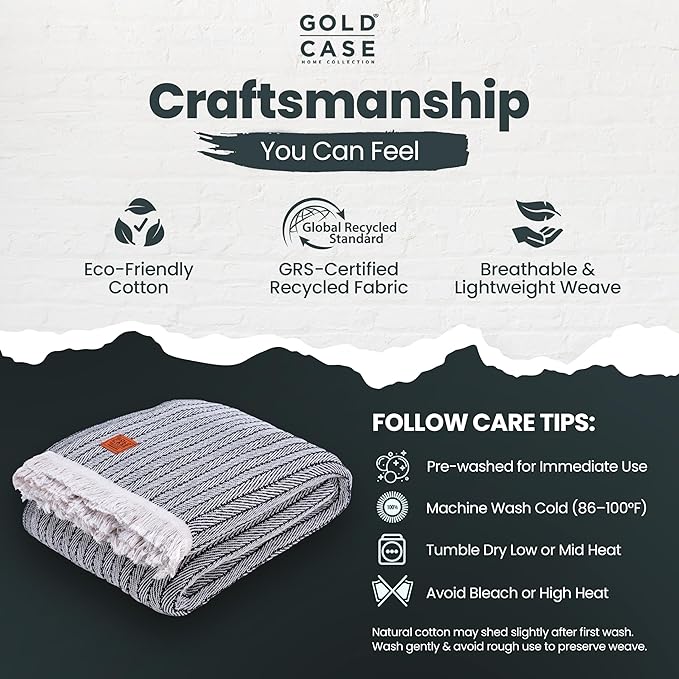 - CRAFTSMANSHIP BEYOND COMPARE: Thoughtfully woven from recycled cotton, this woven throw blanket is GRS-certified for sustainability; each breathable blanket is responsibly crafted with a breathable weave and finished edges that help minimize fraying