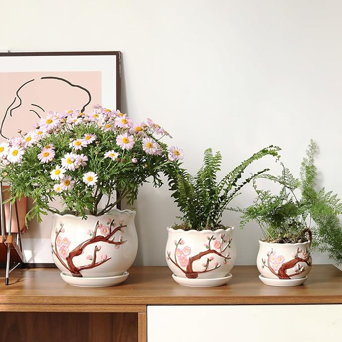 • PLANT POTS SET OF 3 : Made of high-quality ceramic materials, The surface is decorated with hand-painted flowers, suitable for pairing with various interior decoration styles, adding greenery to your home.