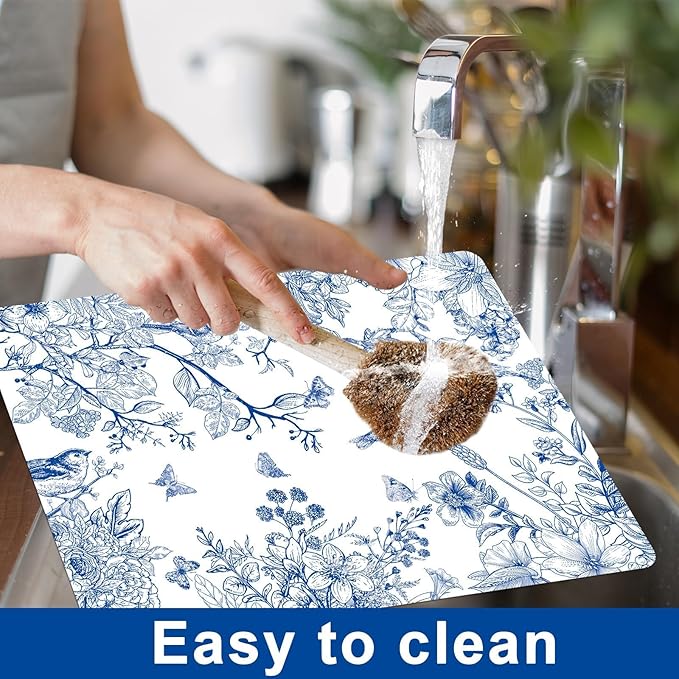 • Eye-catching design:The design of the summer placemats incorporates chinoiserie blue flowers and birds,which will create a elegant atmosphere for your summer theme party.