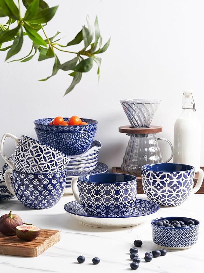 - Bright Color, Attractive Pattern: Vintage blue coffee mugs are with any drink, to enhance the sophistication of your dining table and catch your eye. They're the perfect way to add a stylistic touch to your daily routine and brighten up your life. With a 4-piece set in an elegant shape and mix-match design, they're suitable for any occasion, from home and office to weddings, parties, restaurants, and even holiday gatherings.