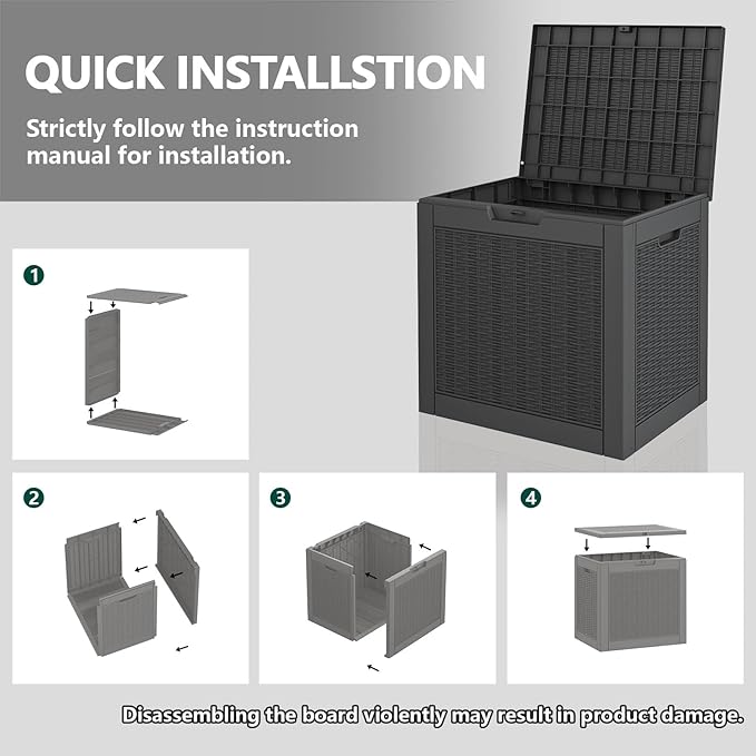 • WATERPROOF AND UV PROTECTION W - Crafted from durable resin material, this outdoor storage box is designed to withstand various weather conditions. It is waterproof, fade-resistant, and resistant to bending or breaking due to prolonged UV exposure, ensuring long-lasting use.