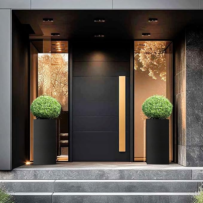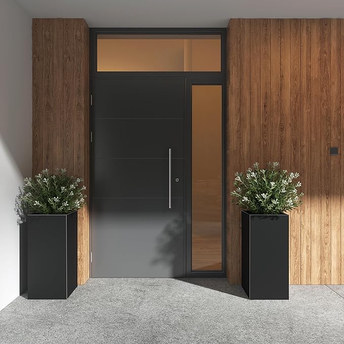 • WIDELY APPLICABLE - The black sleek metallic finish adds a touch of modern sophistication to any space, whether it's your garden, patio or living room.This tall rectangular flowerpot serves as a beautiful accent.