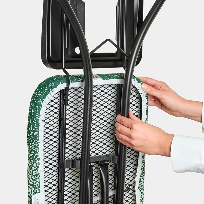 • Detailed Specifications: The Brabantia Ironing Board B (48.8 x 15 inches) adjusts from 27.2 to 37.8 inches, with a 0.87-inch steel frame. Weighing 14.8 lbs, it fits irons up to 5.9 inches.