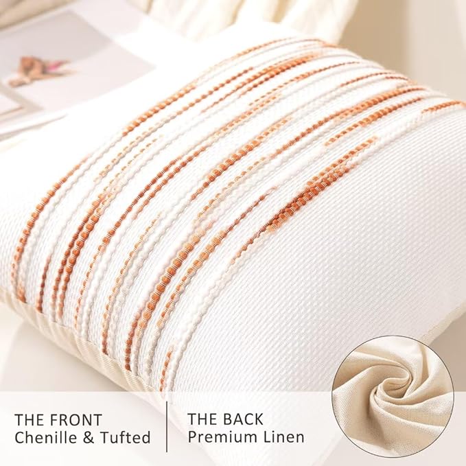 - Fabric: The red stripe pillow case is made up of chenille and tufted on the front, and premium linen fabric on the back. Different styles on both sides offer you multiple decorative ideas. Sturdy stitching and careful hemming make the red decorative pillow covers durable and exquisite. The zipper pulls up smoothly and is not easy to break