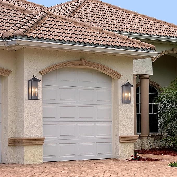 18 Inch Wall Light in Clear Glass and Textured Black and Golden Candle Cap Sleeve,Outdoor Lighting Wall Sconce,2-Light 120watts for House Doorway Garage,Bulb Not Included.